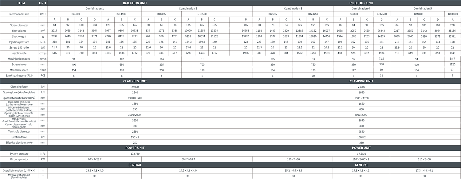 3.When an injection unit has two kinds of power and it is used as the main injection unit, the larger power shall be taken.